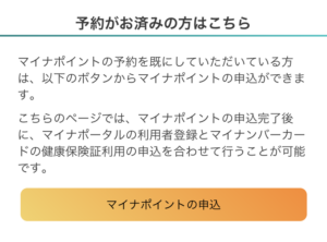 最初の画面に戻るので、下にスクロールしていき、マイナポイントの申込をおこないます。