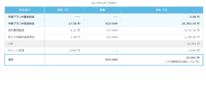 請求については、カード会社の支払いということでやや遅く、12月8日~1月8日までの電気料金の請求が、2月20日頃にきたという感じです。